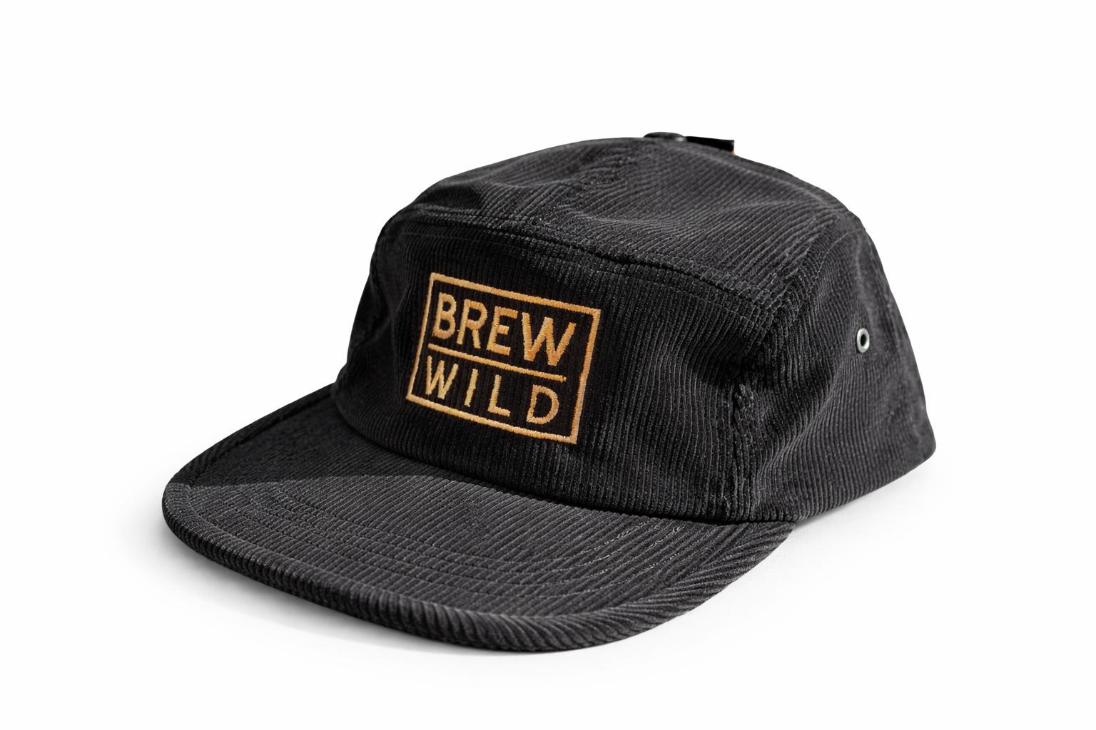 GORRAS de 5 paneles de Pana fabricada en 100% Algodón Orgánico. Visera plana. Ojales de metal. Incluye cierre trasero ajustable de tela con hebilla y ojal. Personalizadas con logotipo Bordado 2D «BREW WILD» / en el frontal.