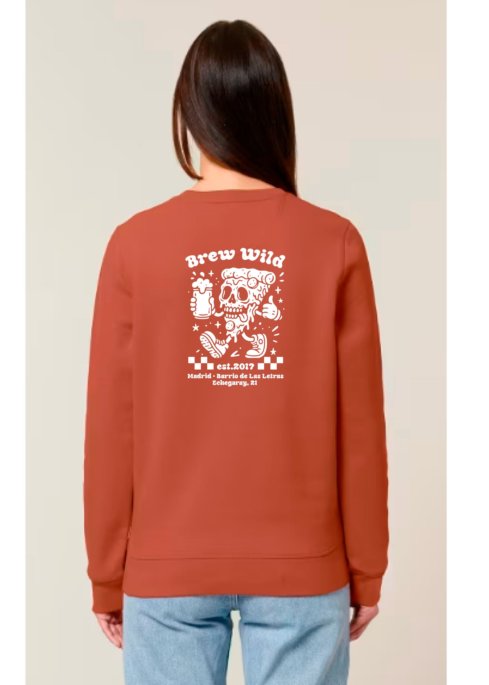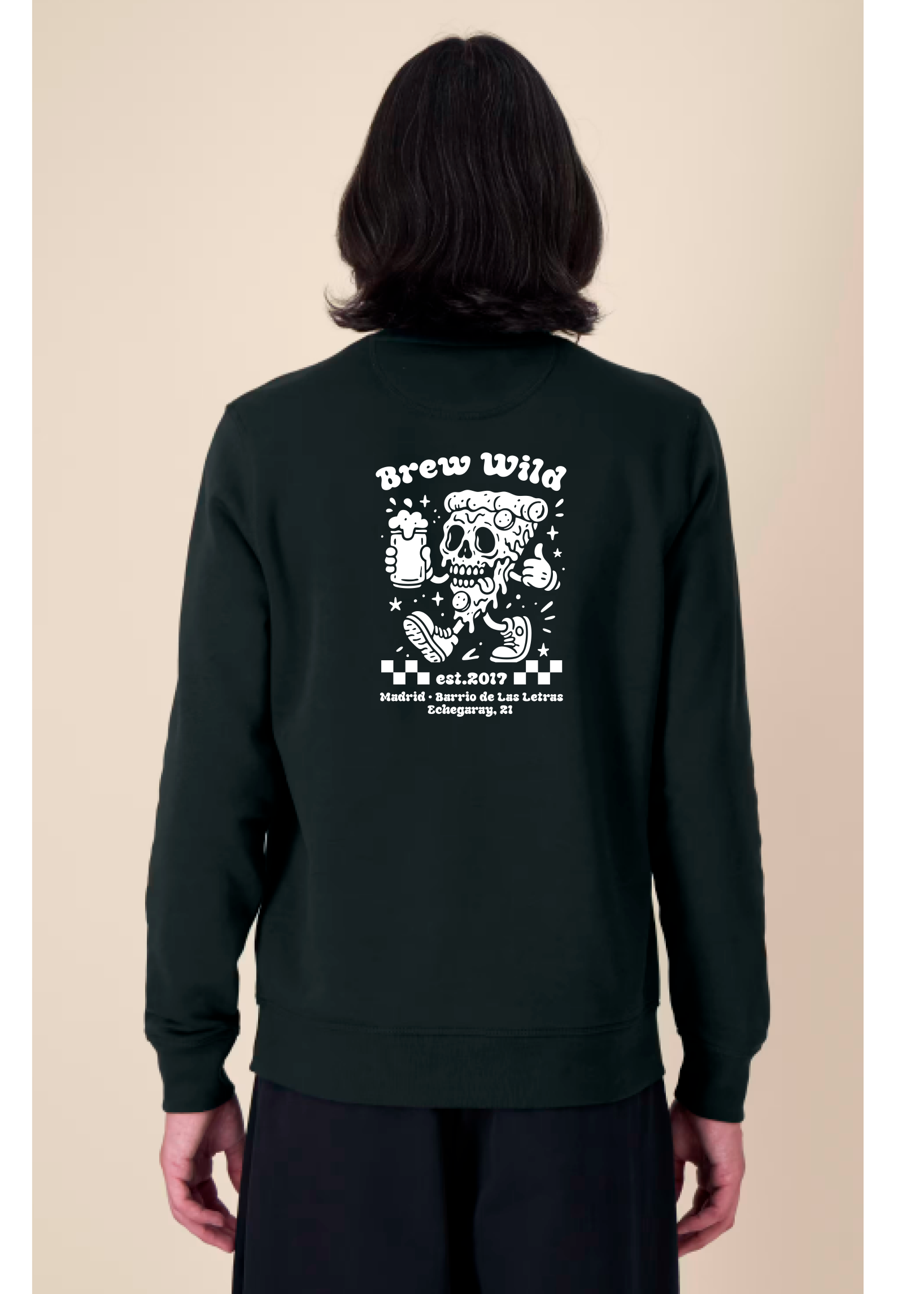 SUDADERAS NUEVA PIZZA SKULL (LIMITED EDITION) de cuello redondo. Felpa perchada. 85% Algodón orgánico hilado en anillos y peinado y 15% Poliéster Reciclado. Peso: 280 gr/m². Manga ajustada. Canalé 1×1 en cuello, dobladillo de mangas y dobladillo inferior. Bies interior de espiga en nuca. Media luna interior en tejido principal. Costuras planas en todas las costuras.