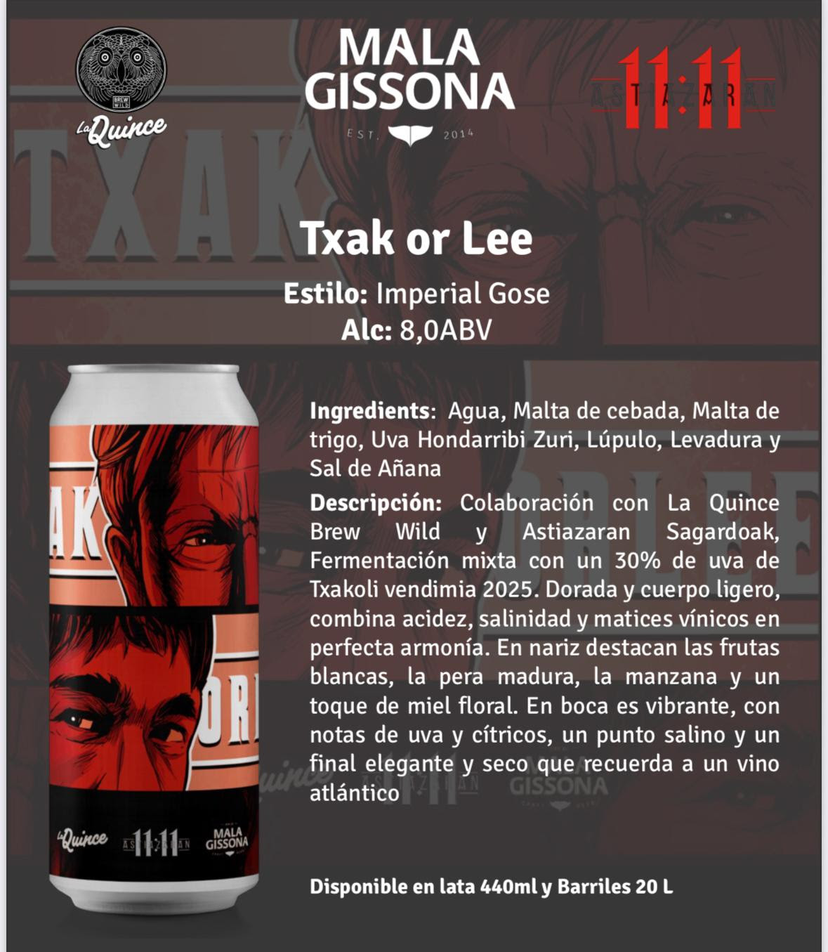 Nueva edición de una de las cervezas más especiales del año. Cerveza de fermentación mixta que no pudimos elaborar el año pasado por la escasez de cosecha de uva hondarribi zuri con la que se elabora el txakoli.